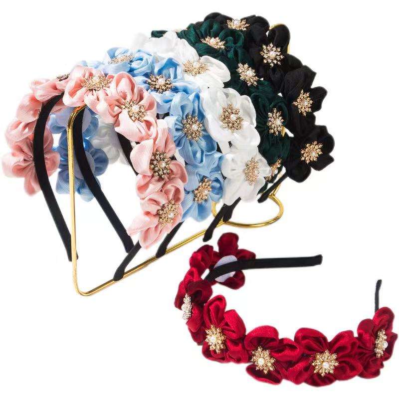 Brillant Chic Bonbons Couleur En Cuir Fleur Bandeau Tempérament Scintillant Strass Rembourré Bandeau De Mariée De Mariage Accessoire De Cheveux