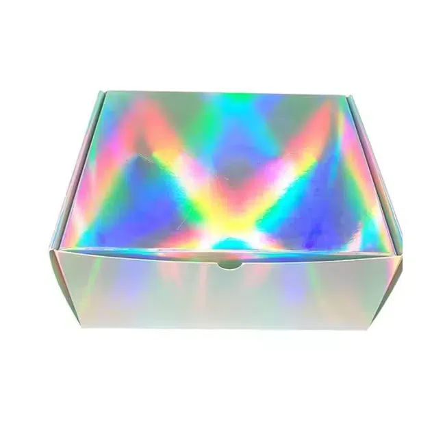 Boîte de papier hologramme d'emballage en papier recyclable pliable de couleur brillante