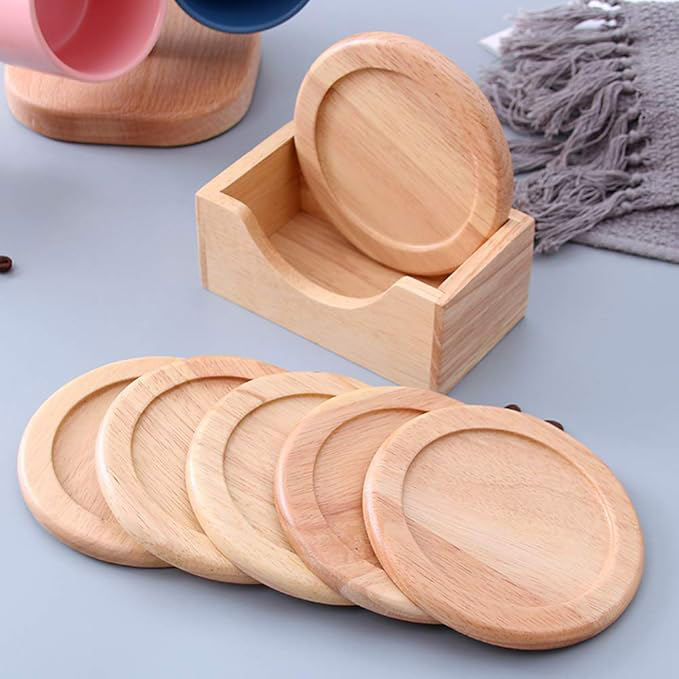 Dessous de verre à thé en bois de forme ronde brillante servant des boissons jus de fruits collations de table décorative avec support tampon en noyer à bas prix