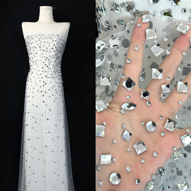 Shiny Geometric Diamond Mesh Lace Fabric Square Water Droplet Round Diamonds Stage Costume Decoration Couture Dress Accessory