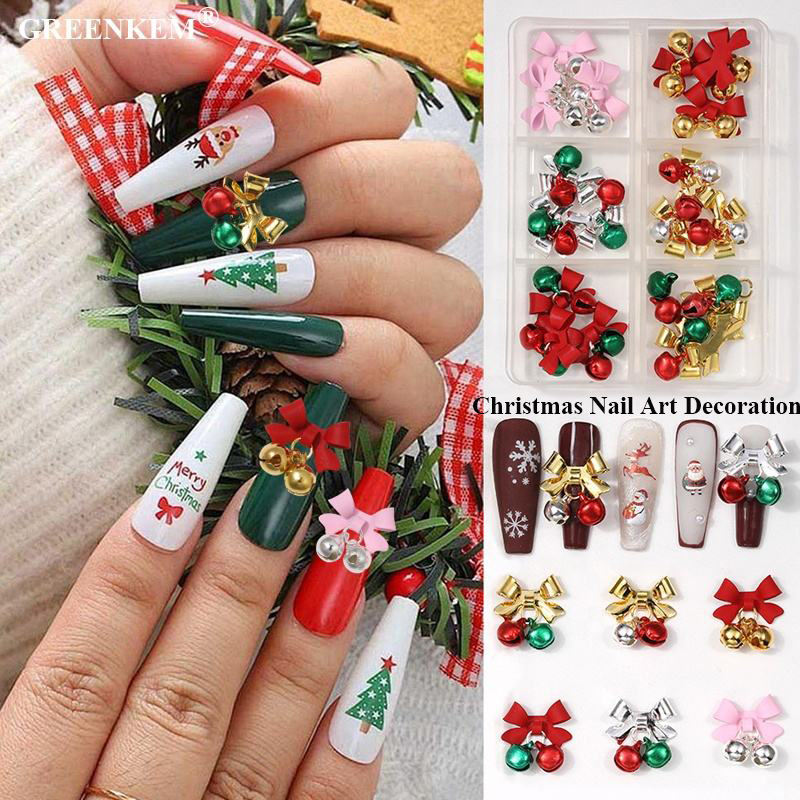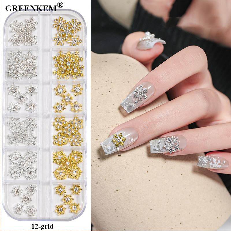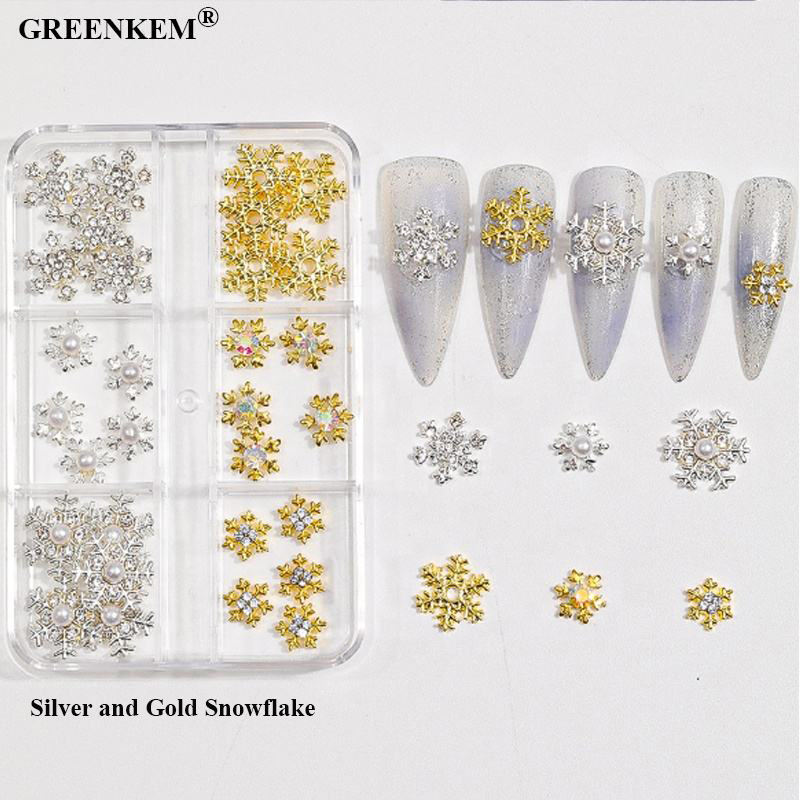 Brillant Or Argent Flocon De Neige Cloche 3D Nail Charms En Gros AlloyHollow Cut Out Design Noël Nail Art Décoration