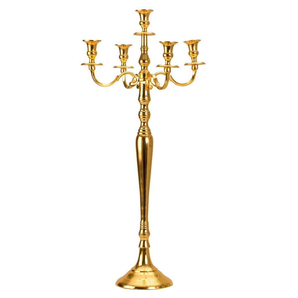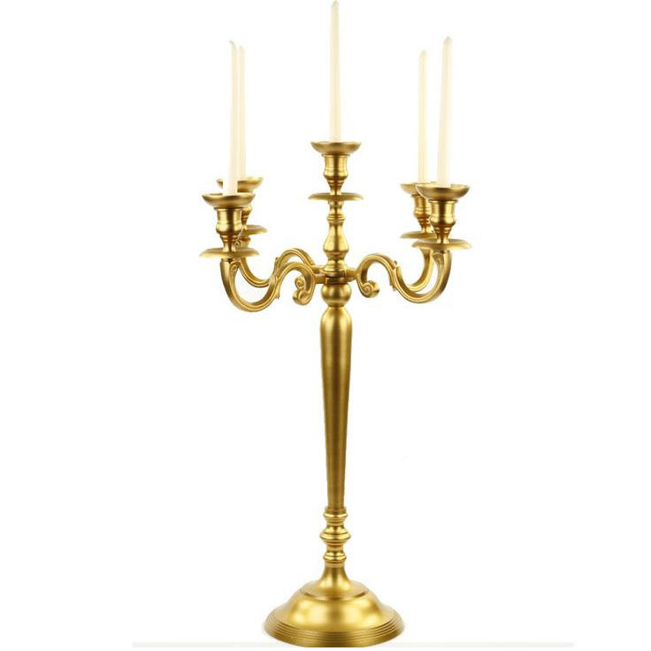 Candélabre en aluminium de couleur dorée brillante dernière conception bougeoir à 5 bras pour grand candélabre décoration de table de mariage et fête