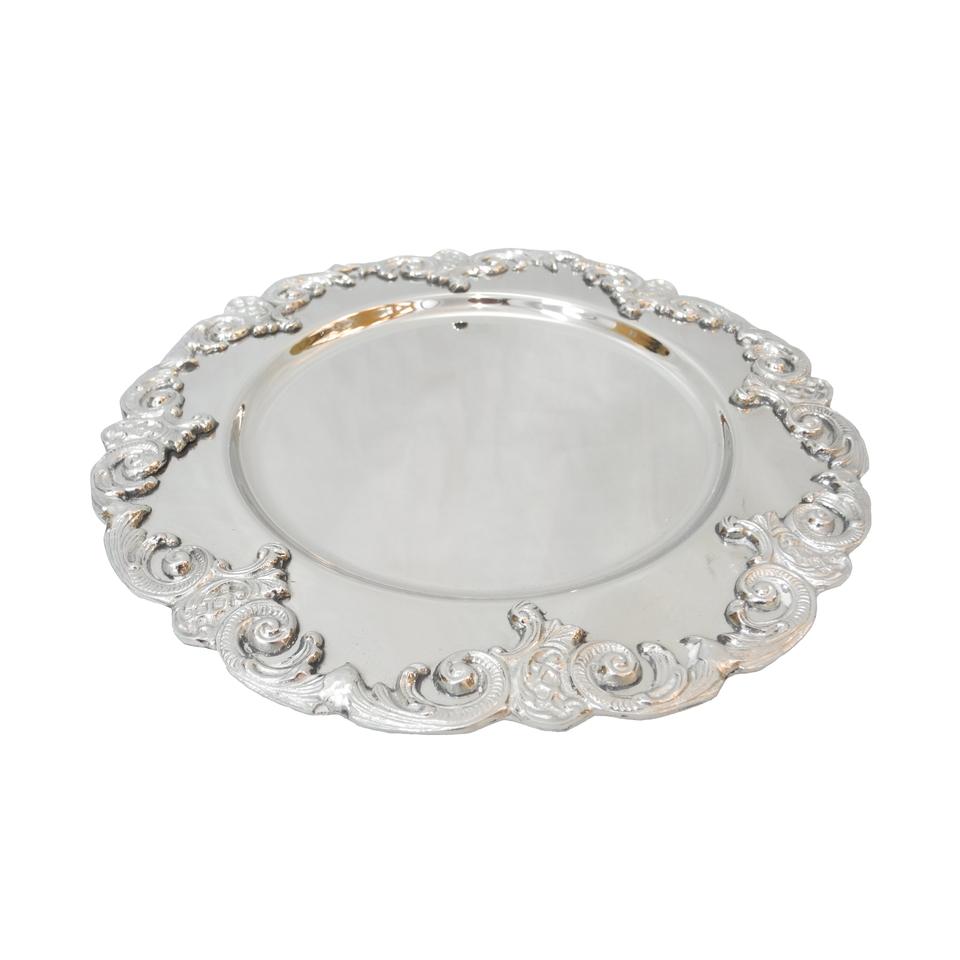 Assiette de service en métal avec motif en relief, pour la restauration hôtelière, utilisation pour les mariages, la restauration hôtelière, article décoratif