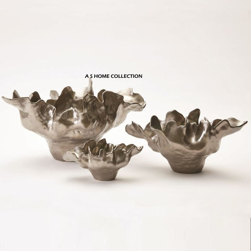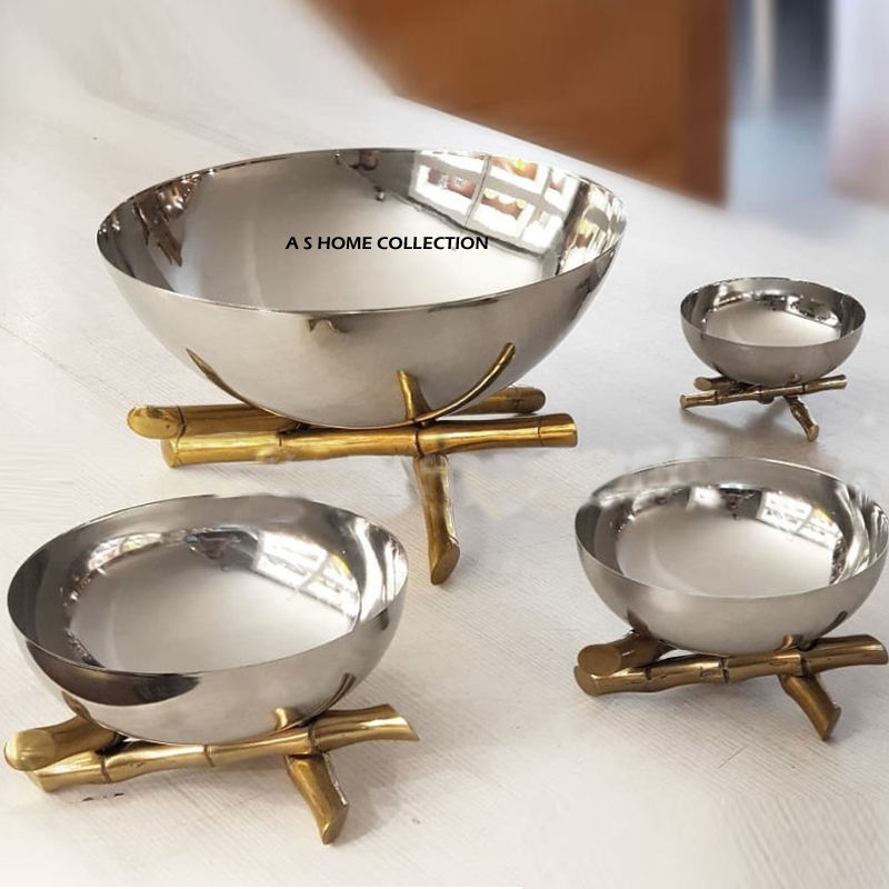 Bol en acier inoxydable poli brillant de forme ronde avec bol en métal aluminium de haute qualité pour la maison, l'hôtel, ensemble de 4 bols de service