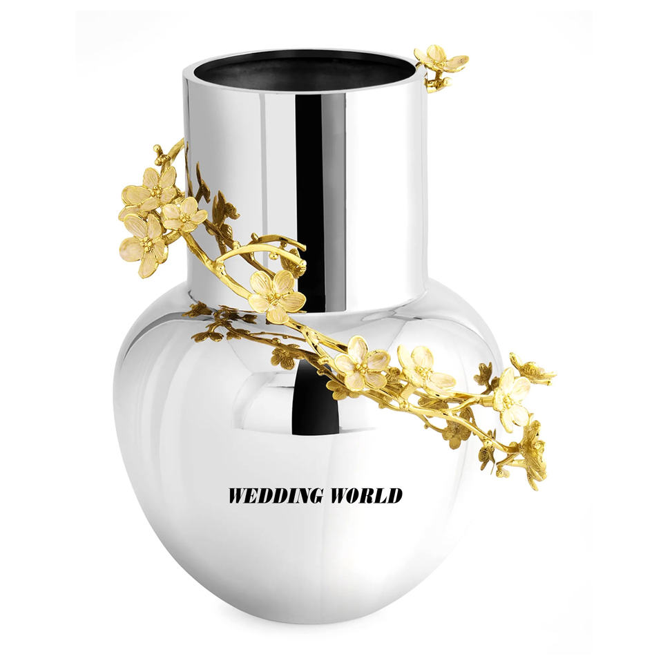 Vase à fleurs en métal fini argent brillant Porte-fleurs fait main de qualité supérieure Pot de fleur en métal en gros élégant classique