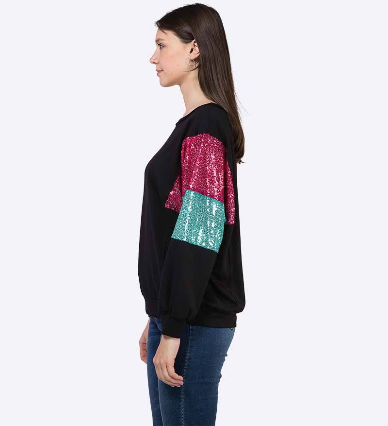 Shiny Women's Oversized Fleece Sequin Pullover Patchwork Sweatshirt Loose Casual Sequin Sweater Custom Pullover Hoodie