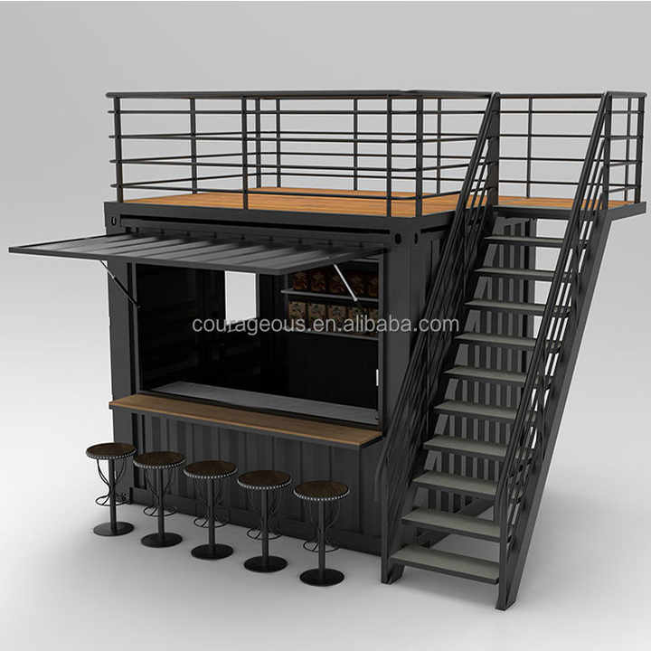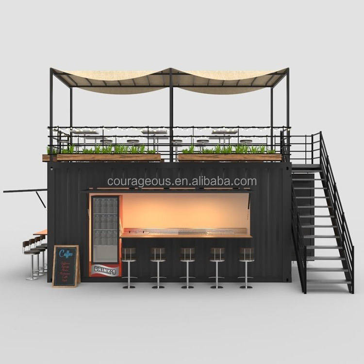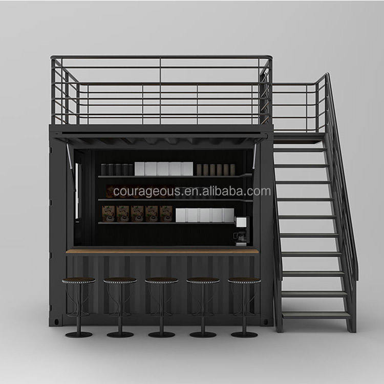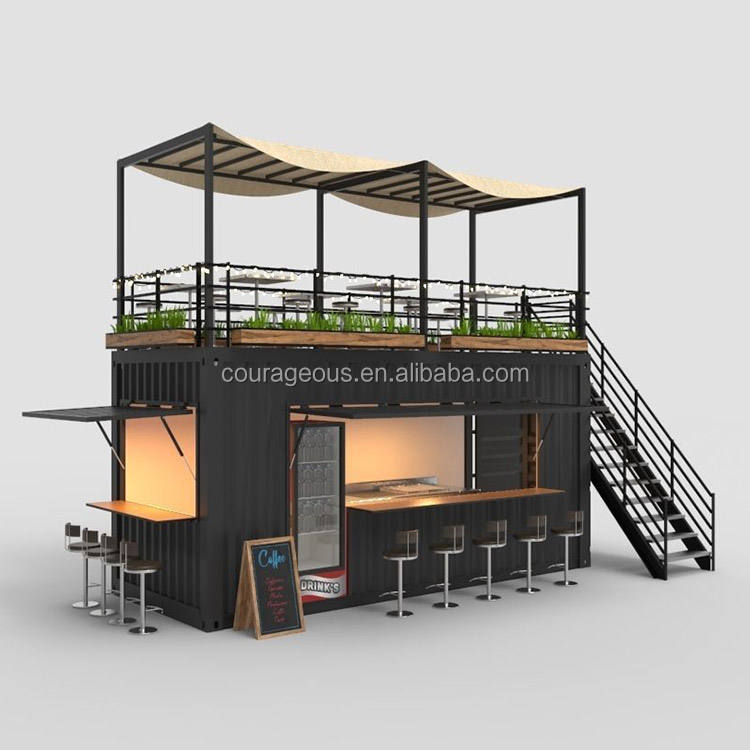 Kiosque-bar conteneur maritime pour centre commercial, conception de restaurant sur mesure avec structure en acier, fabricant