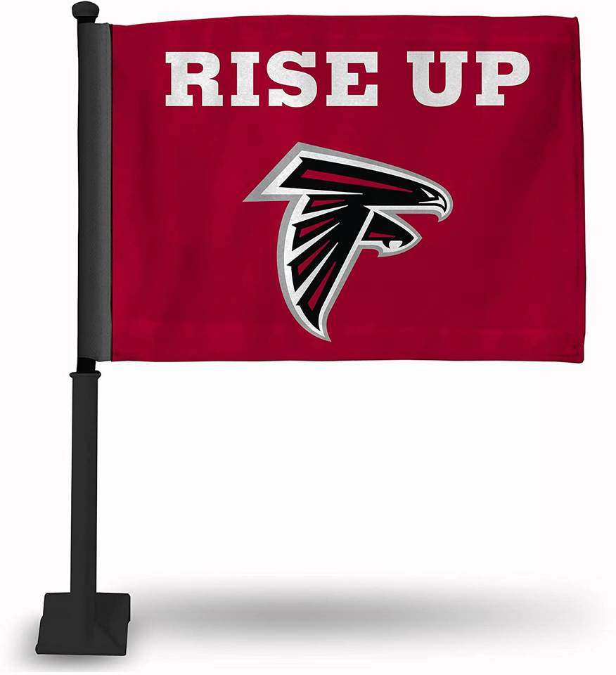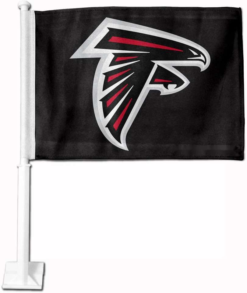 Expédition rapide, drapeau de voiture imprimé des Falcons d'Atlanta, 100% polyester, bannière incluse, mât de drapeau neuf