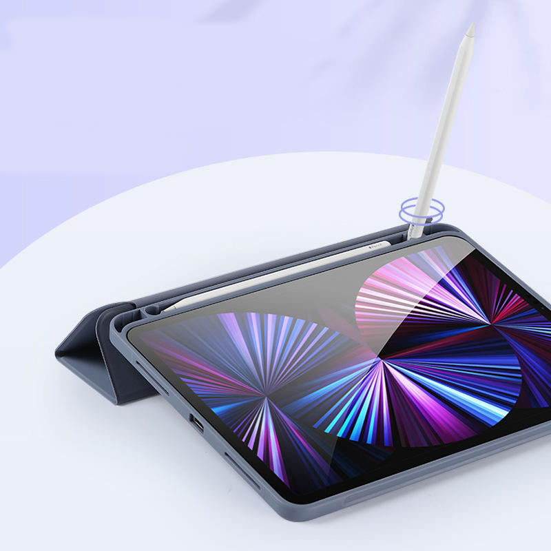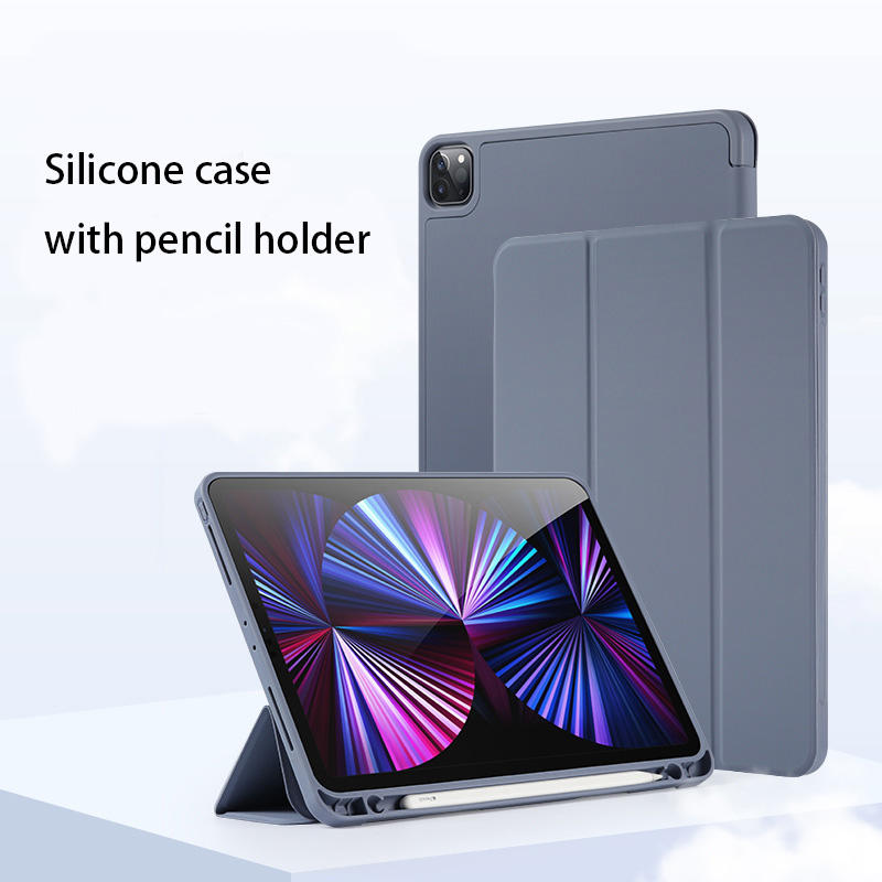 Housse antichoc pour iPad 10 11 12 Air Pro, étui de protection avec support pliable et porte-crayon, silicone souple et durable