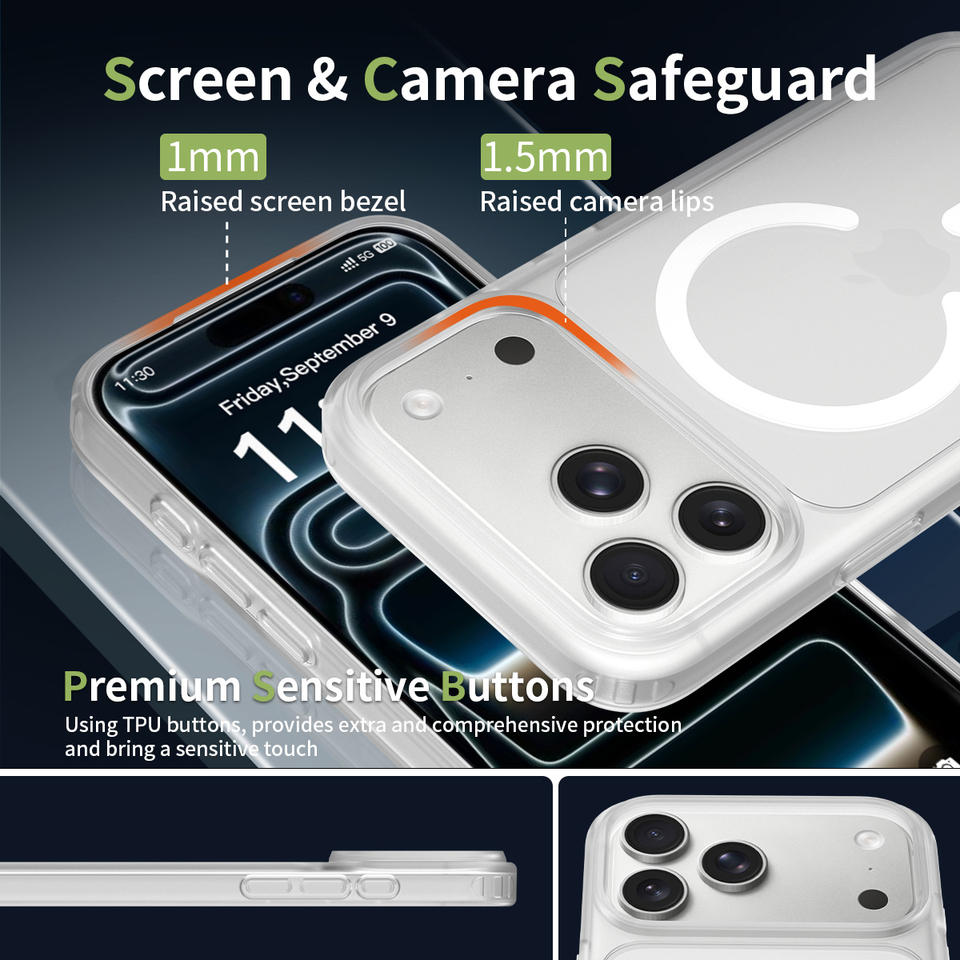 Coque antichoc avec recharge magnétique sans fil mate, étui transparent pour iPhone 17 Pro Max