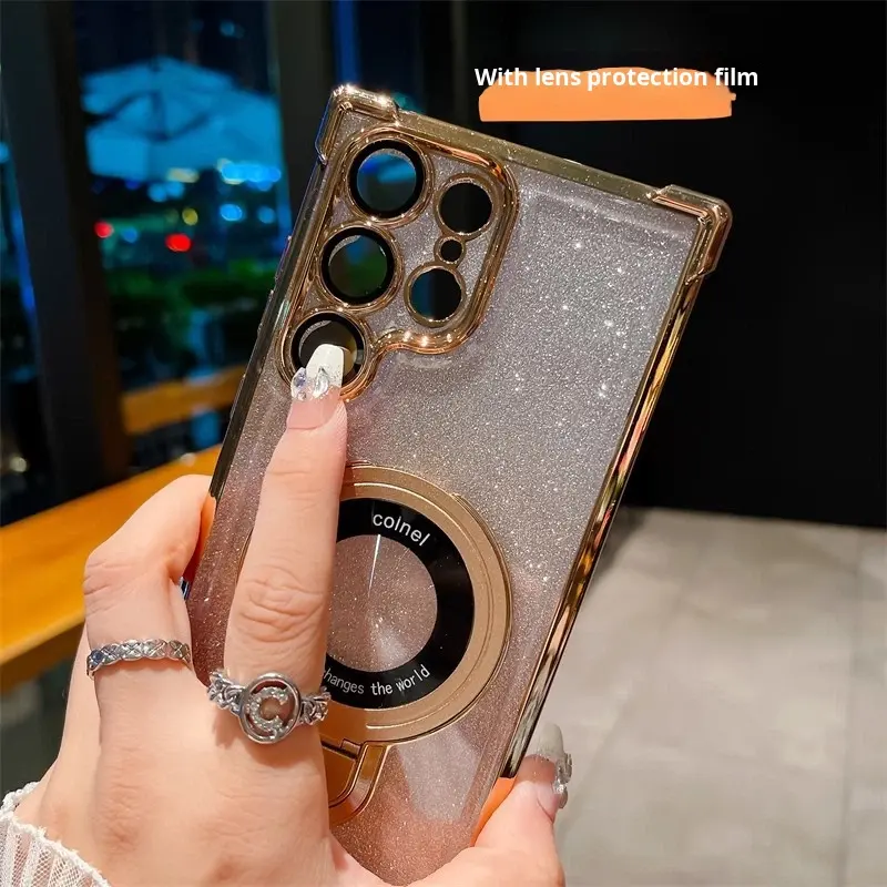Nom du produit:Coque de téléphone avec anneau magnétique, effet dégradé pailleté et finition électroplaquée.
