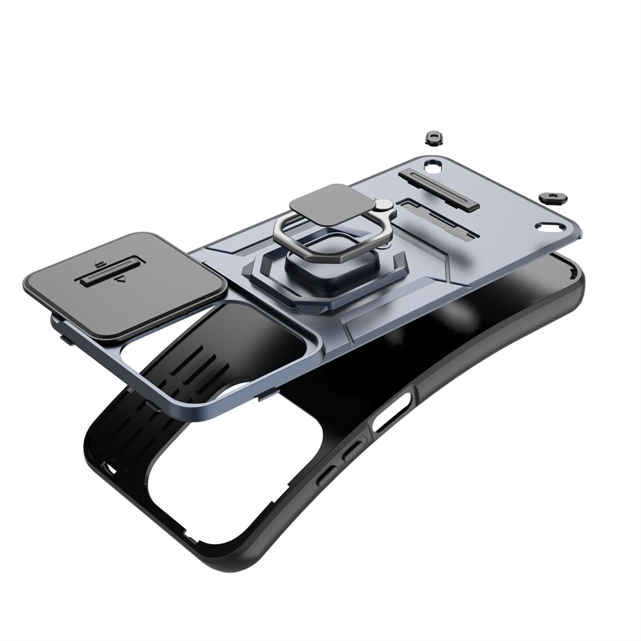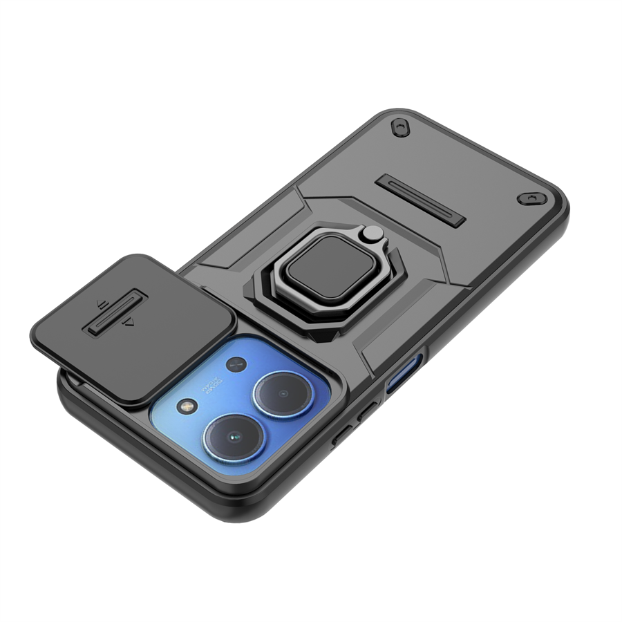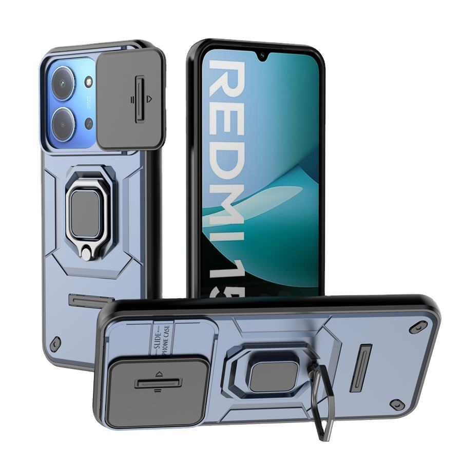 Shockproof Hard Plastic PC Protective Lens Cell Phone Cover with Kickstand Holder for Redmi 15C 5G/Redim 15C 4G