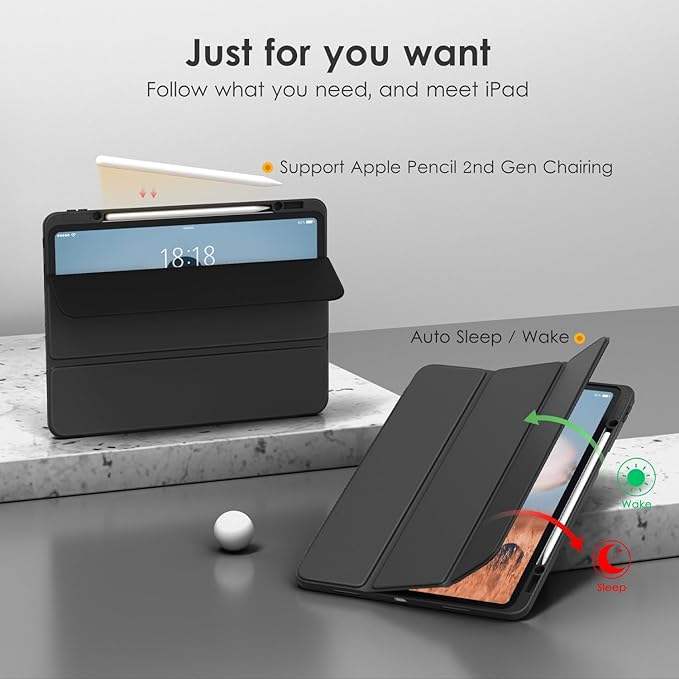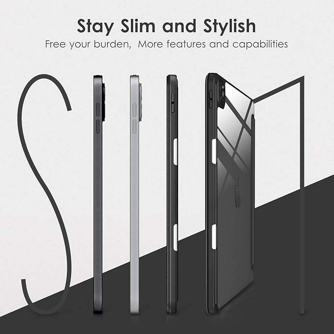 Coque mince antichoc pour iPad Pro 12.9 6ème/5ème/4ème/3ème génération 2022/2021/2019/2018, couverture arrière transparente avec porte-crayon