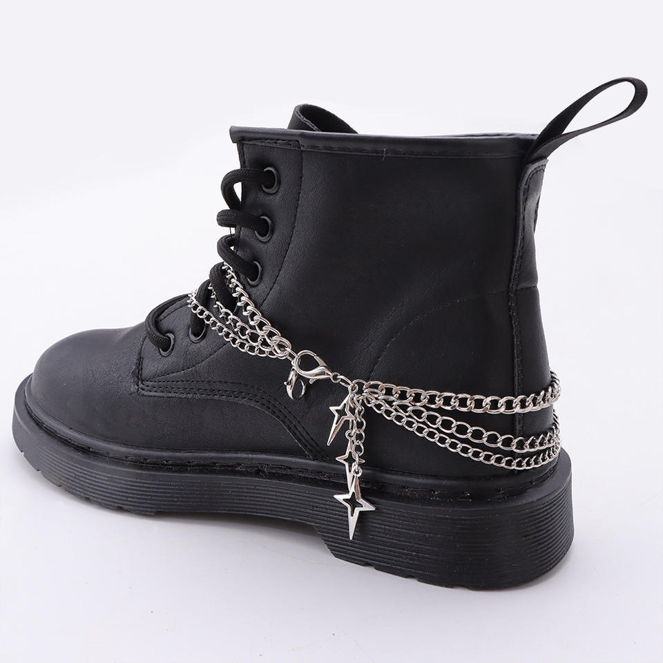 Chaîne de chaussures avec pendentif croix et étoile, décor en alliage métallique pour femmes, bottes Martin, accessoire de style punk, blanc K