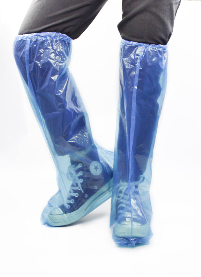 Couvre-chaussures en plastique jetables, couvre-bottes en plastique imperméables, couvre-chaussures au-dessus du genou avec bande élastique