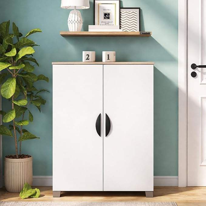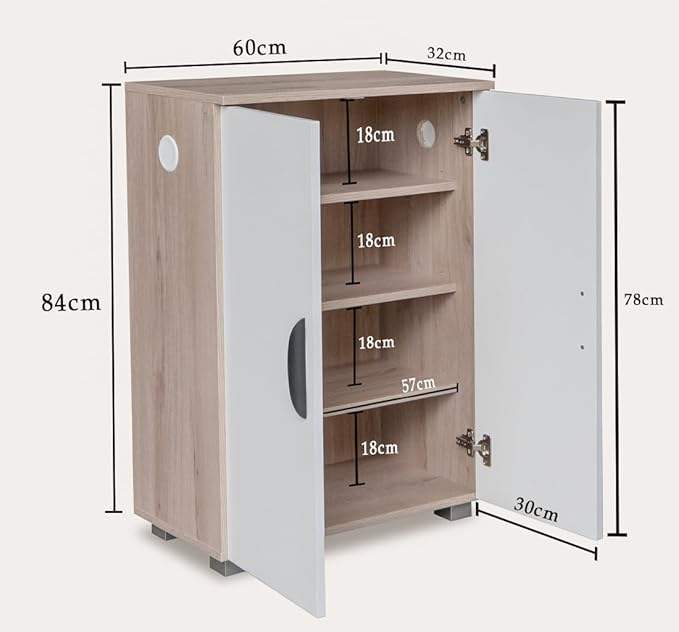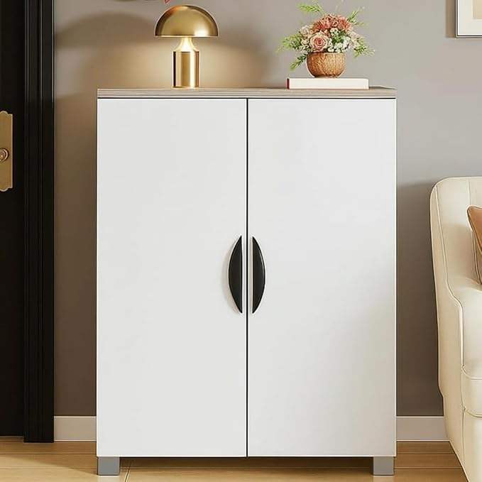 Meuble à chaussures en bois - Armoire à chaussures en bois d'ingénierie à 2 portes, meuble de rangement à chaussures à 4 niveaux avec portes et étagères réglables, en bois