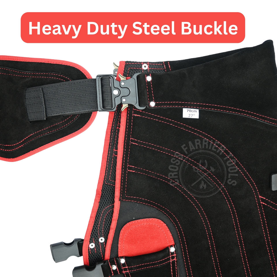 Tablier de cordonnier avec longues jambières, ceinture ajustable, boucle robuste, panneaux en maille ventilée, poches de rangement pour couteaux, porte-clous