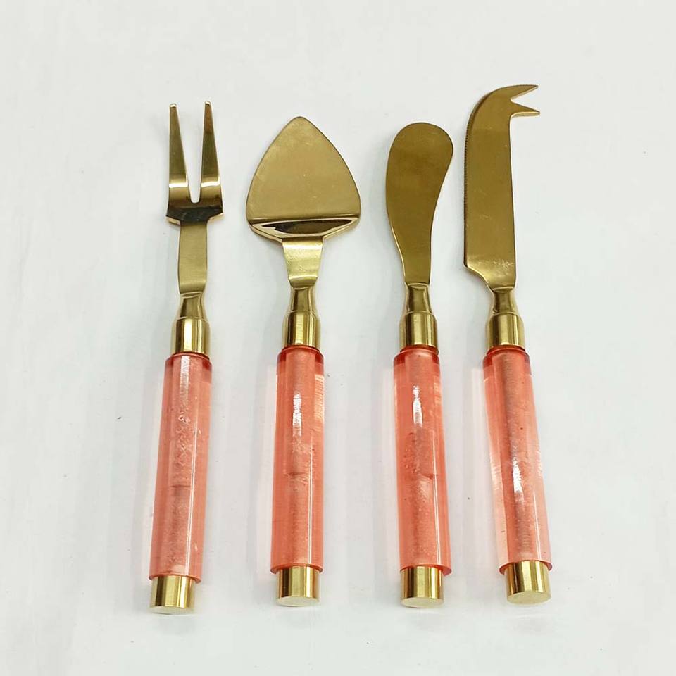 Achetez maintenant : Ensemble de couteaux à fromage écologiques en acier inoxydable avec manche carré épais argenté, comprenant des outils à étaler et à trancher