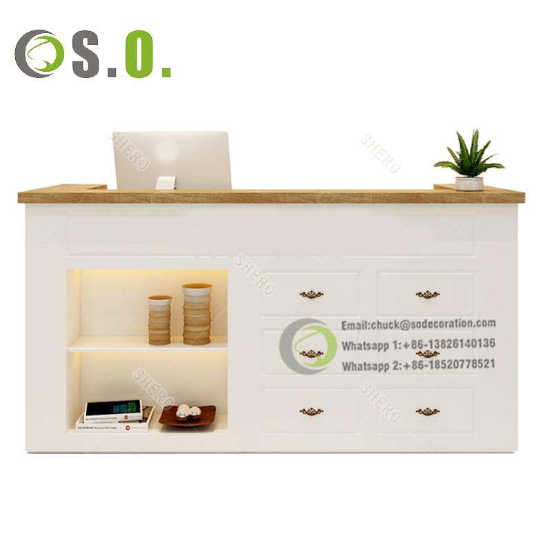 Comptoir de réception de centre commercial, table de comptoir en bois pour supermarchés