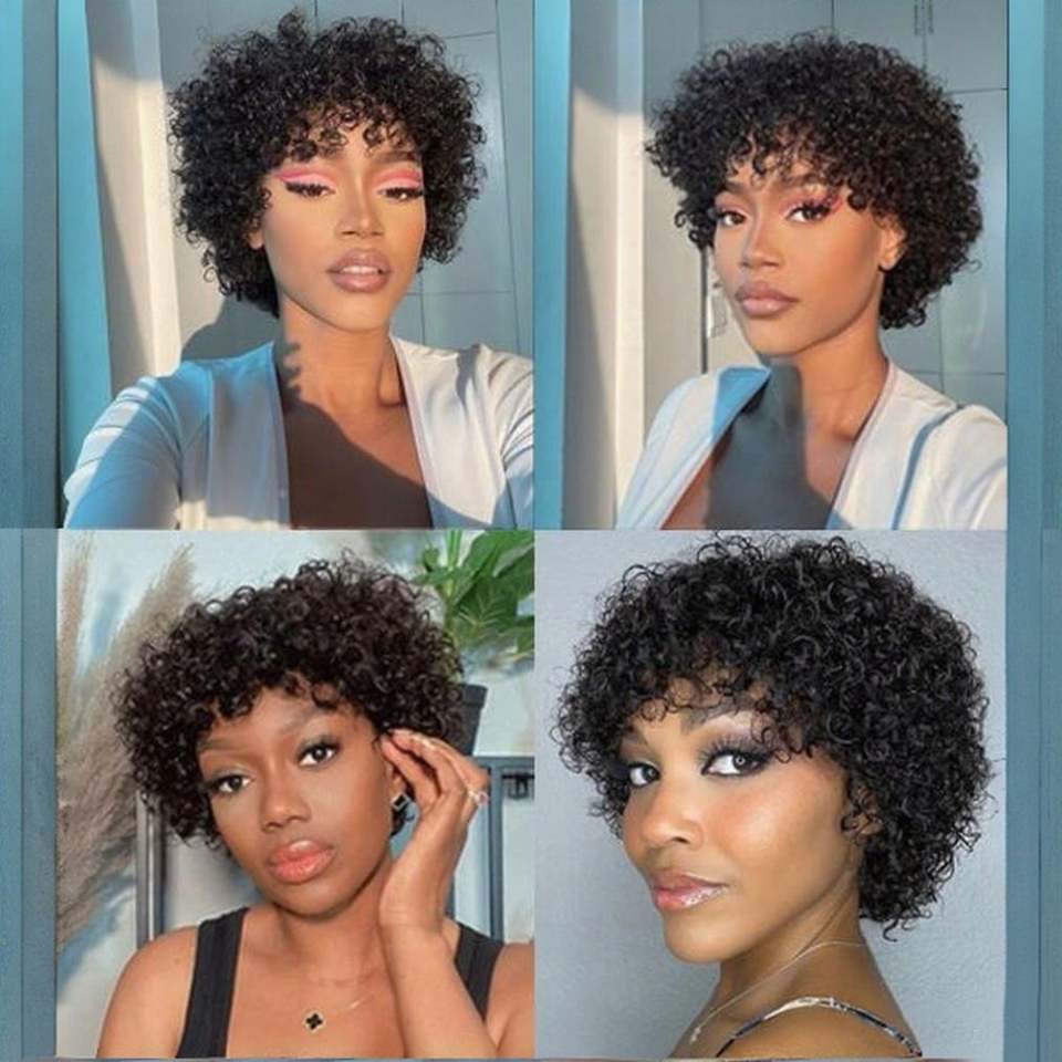 Perruque courte bouclée 100% cheveux humains Remy indiens pour femmes noires, sans colle, bonnet léger et confortable pour un usage quotidien et les fêtes