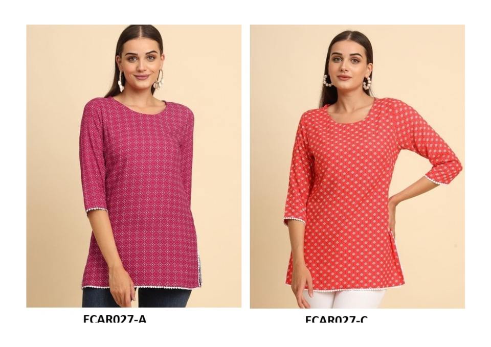 Short Kurti Top for Women in Cotton-Rayon Fabric Lightweight Indian Ethnic Style for Modern Looks Available for Export