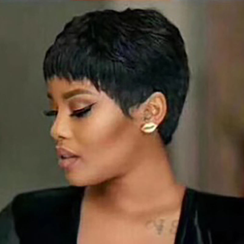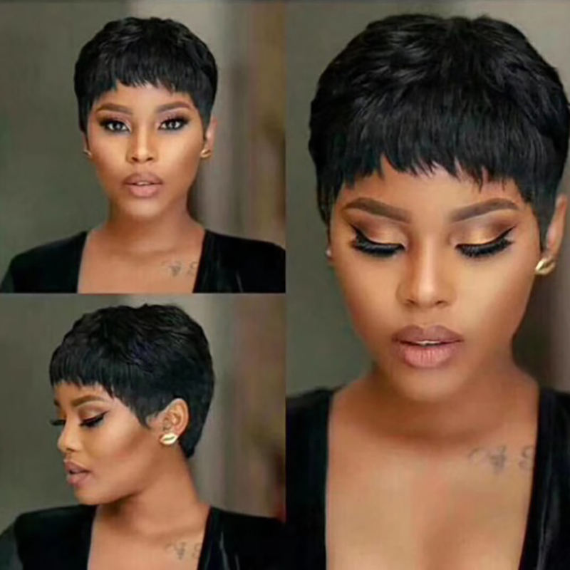 Perruques Courtes Pixie Coupées Bob Plissé Ondulé Noir Synthétique pour Femmes Noires