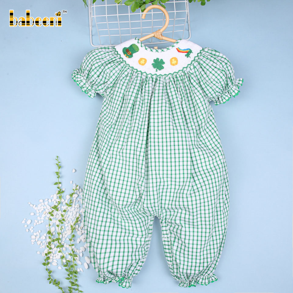 Romper à manches courtes pour bébé fille St. Patrick's Day avec boutons pression-Printemps Saison 100% Coton BB1821