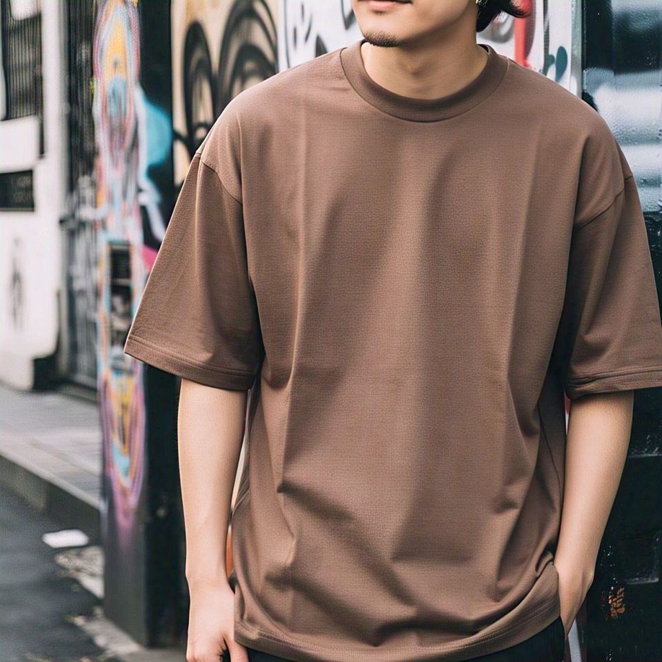 T-shirt à manches courtes 100% coton pour hommes coupe ample col rond chemise de base et vêtements amples de couleur unie simples