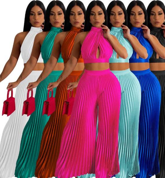 Short Sleeveless Top Pants with Pocket Solid Color Women's Casual Sportswear Two-Piece