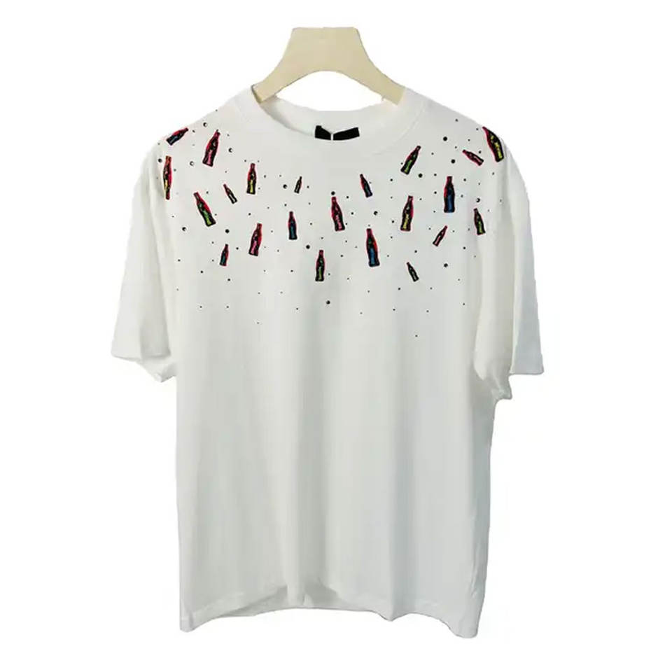 T-shirt à manches courtes en coton 100% avec strass, best-seller - Haute qualité, respirant, décontracté, tendance pour hommes