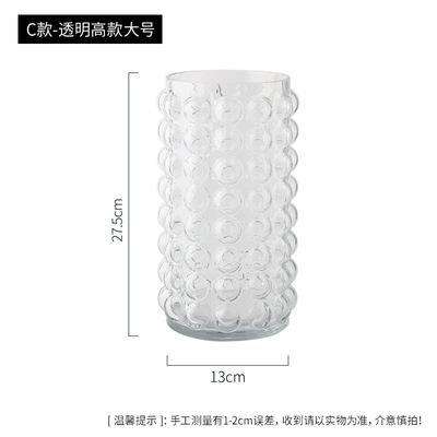 Vase en verre à bulles de style court et de petite taille, transparent, style Ins, décoration française en relief, articles pour l'arrangement floral dans le salon