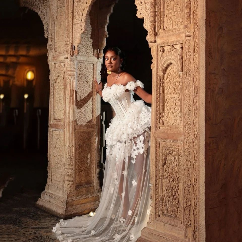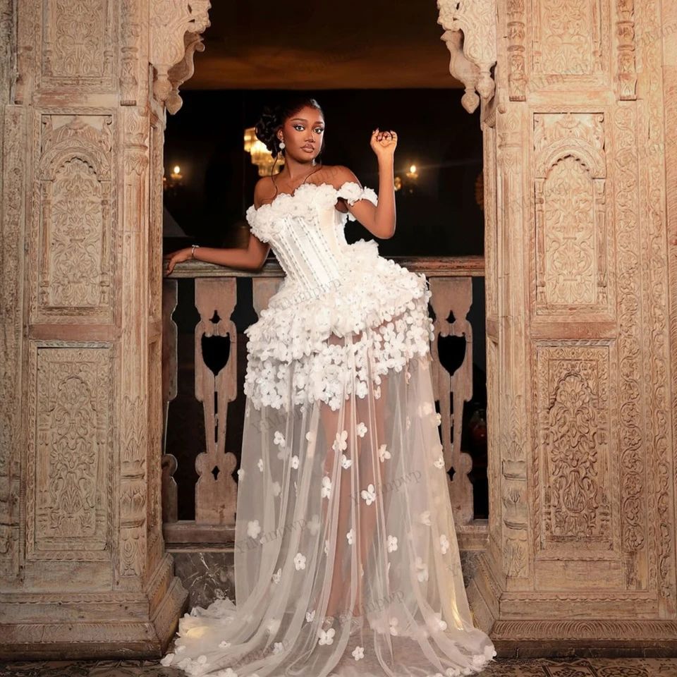 Robe de mariée courte avec fleurs et perles faites à la main, transparente, grande taille, dos corseté, pour réception, personnalisable
