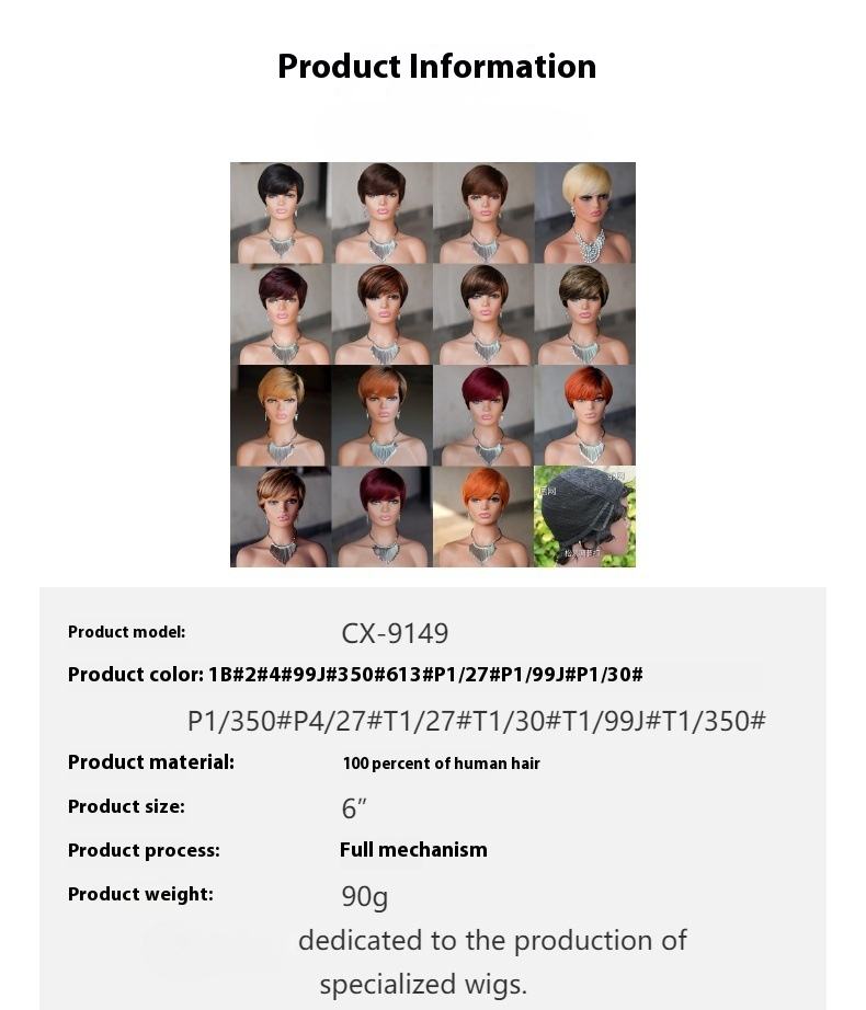 Perruque courte sans colle, style pixie, prête à porter, avec frange, coupe courte dégradée pour femmes noires, perruque en cheveux humains