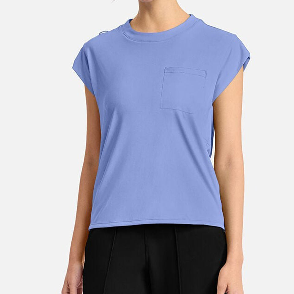 Nom du produit:Top Femme Tuck-In Poche Poitrine Col Ras Du Cou Bleu Ciel