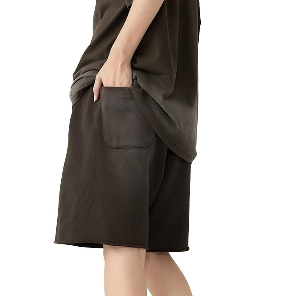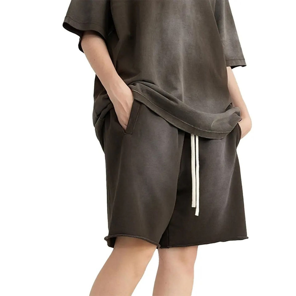 Shorts de haute qualité en coton délavé à l'acide, style streetwear décontracté et sportif pour hommes, avec cordon de serrage.