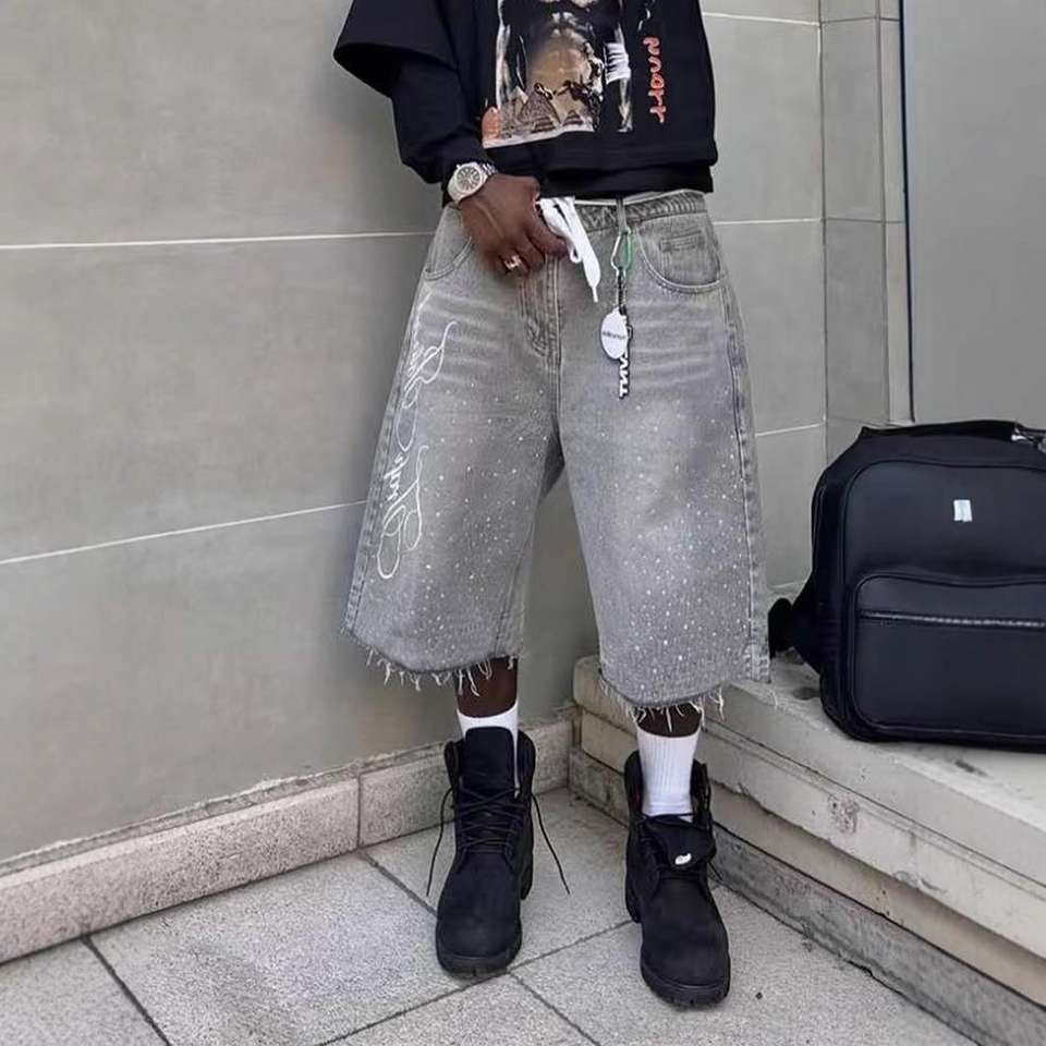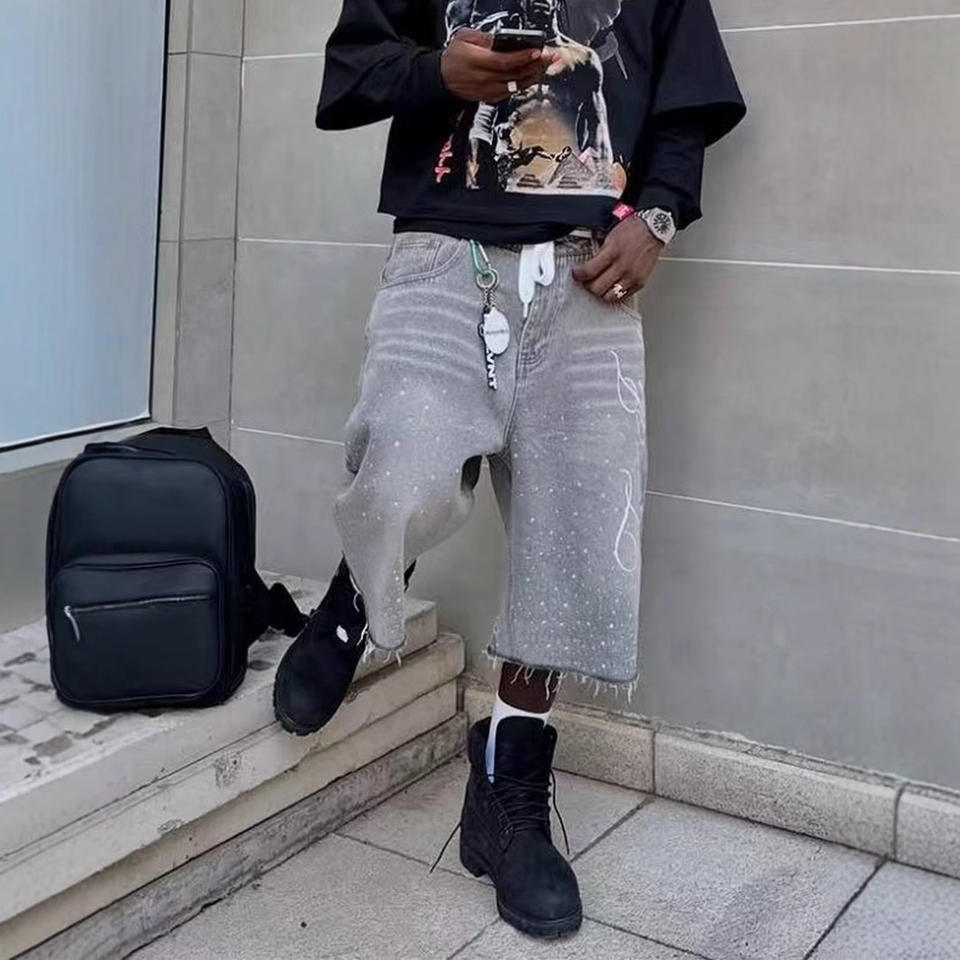 Shorts de Hombre Jeans and Culotte Jean Pour Homme Supplier Custom Rhinestone or Ripped Loose Fit Denim