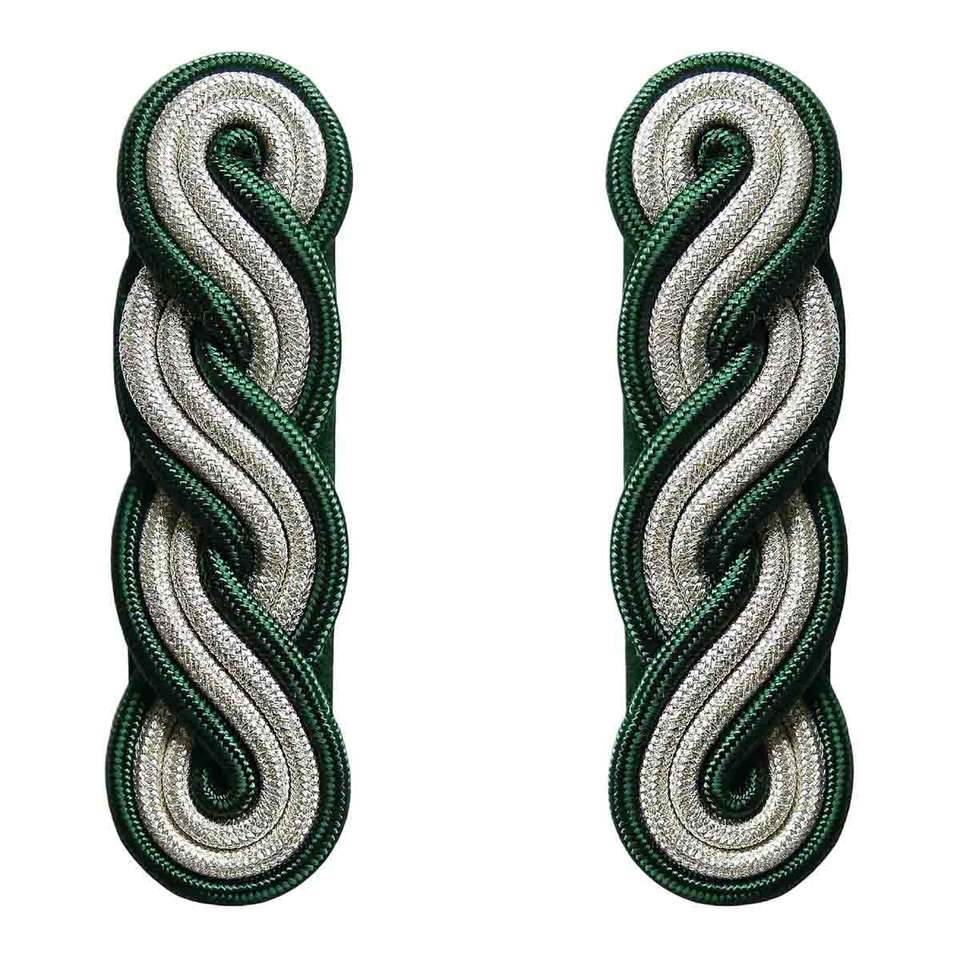 Shoulder boards 2-striped, silver with green, on green felt Customizable Size Twisted Corded Bullion Braided Ceremonial Shoulder