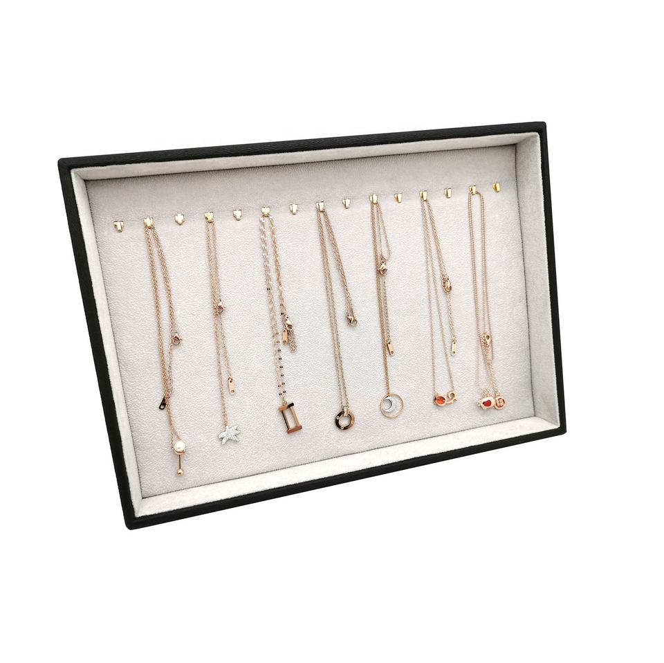 Boîte de présentation en cuir PU, présentoir de bijoux, plateaux avec crochet pour Bracelet et collier empilables et léger