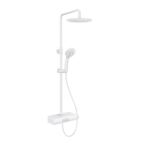 Colonne de douche blanche de 94 cm de hauteur avec pommeau de douche pluie et douchette à main, ensemble de quincaillerie de salle de bain
