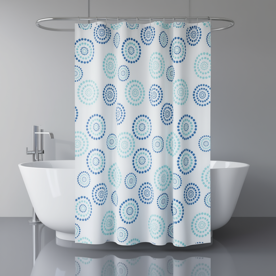 Shower Curtain Dots Pattern 180x200 Cm Blue Polyester Fabric Bathroom Decor