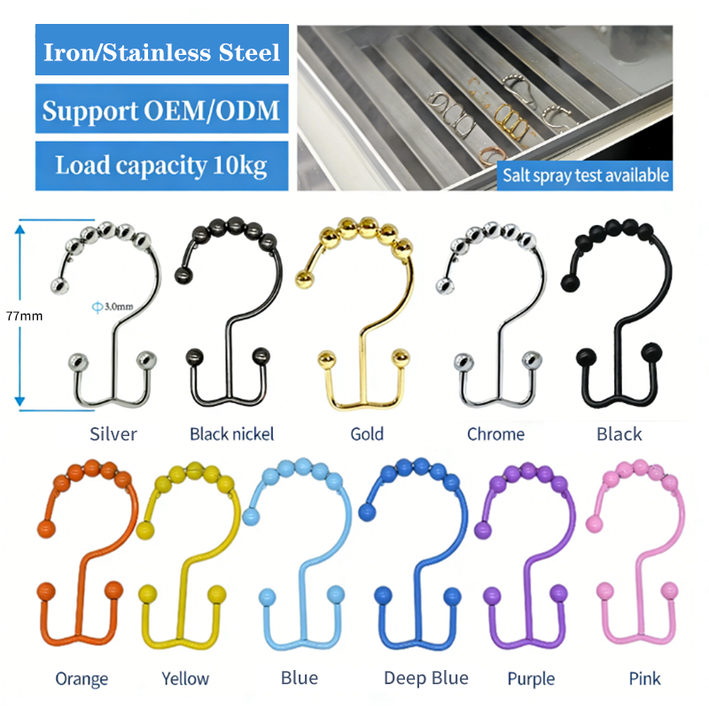 Crochets de rideau de douche à double anneau, crochets latéraux pour rideau de douche, crochets doubles pour rideau de douche