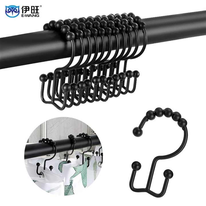 Attaches de rideau de douche en métal avec anneaux, crochets de tringle à rideau antirouille