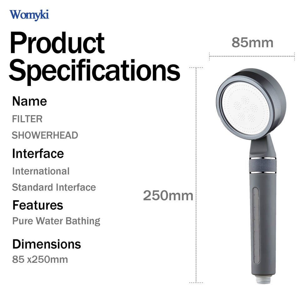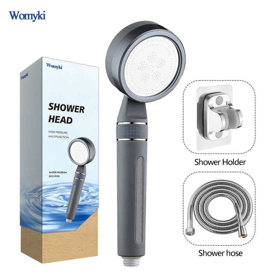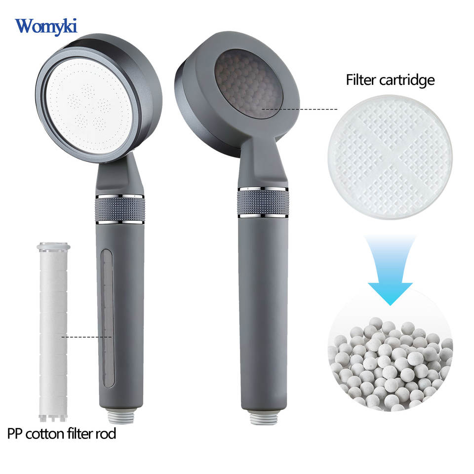 Filtre de douche pour eau dure, réglage de la pression de l'eau rotatif, matériau ABS, avec tuyau et support de pomme de douche, gris canon