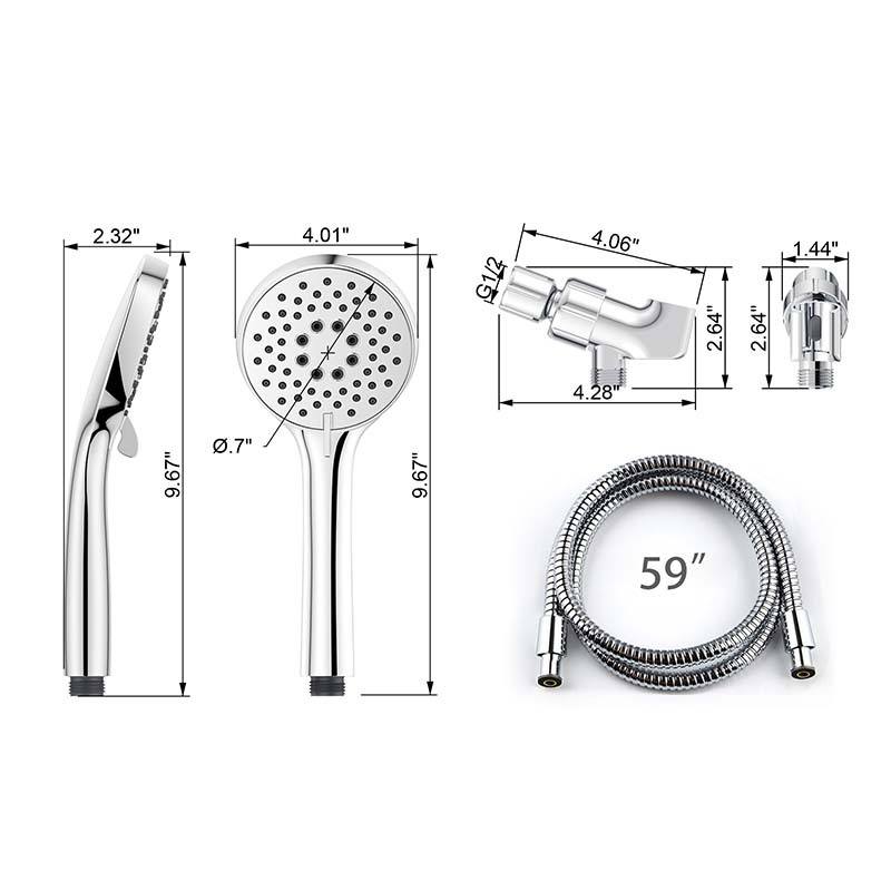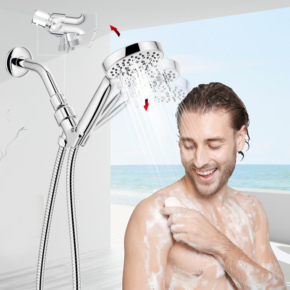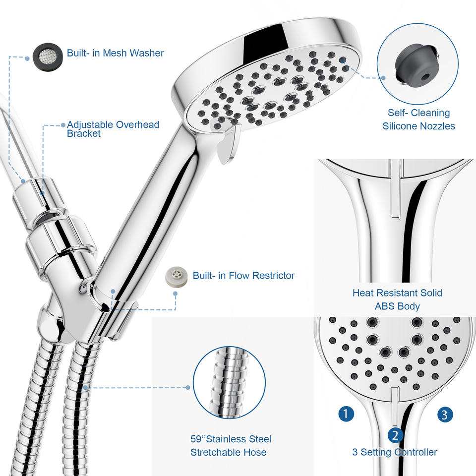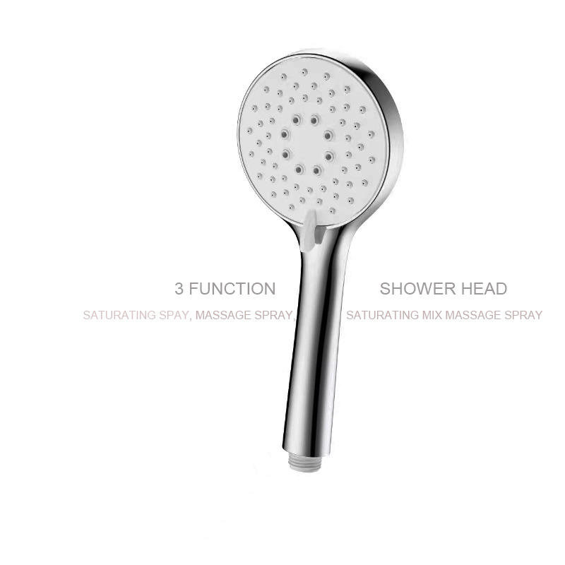 Pommeau de douche 3 fonctions, massage, jet de pluie, rond, chromé, portable, installation facile