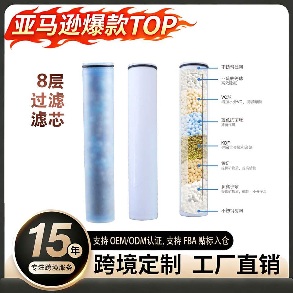 Élément filtrant pour pomme de douche avec KDF, fonction pluie 1 étape, installation facile, remplaçable pour usage domestique
