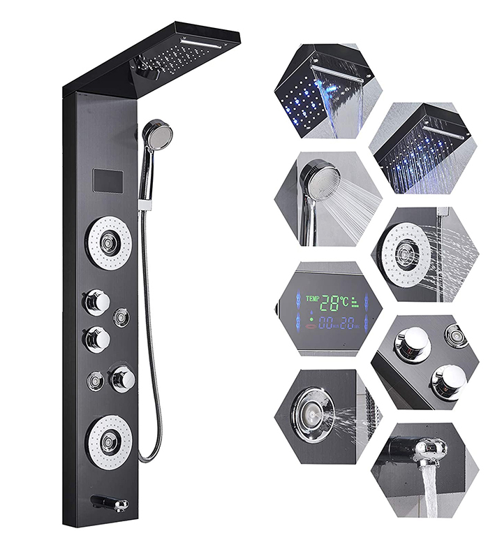 Dispositif exposé de robinet de douche:Avec barre coulissante