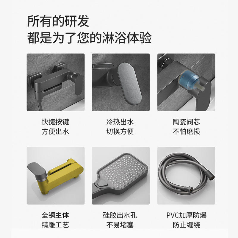 Ensemble de douche avec affichage numérique, température constante, douche pluie, finition mate, installation encastrée, tout en cuivre, gris bronze, finition laquée