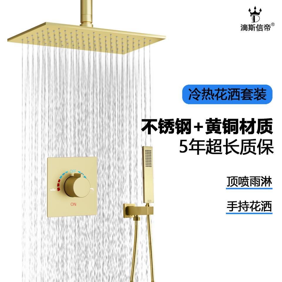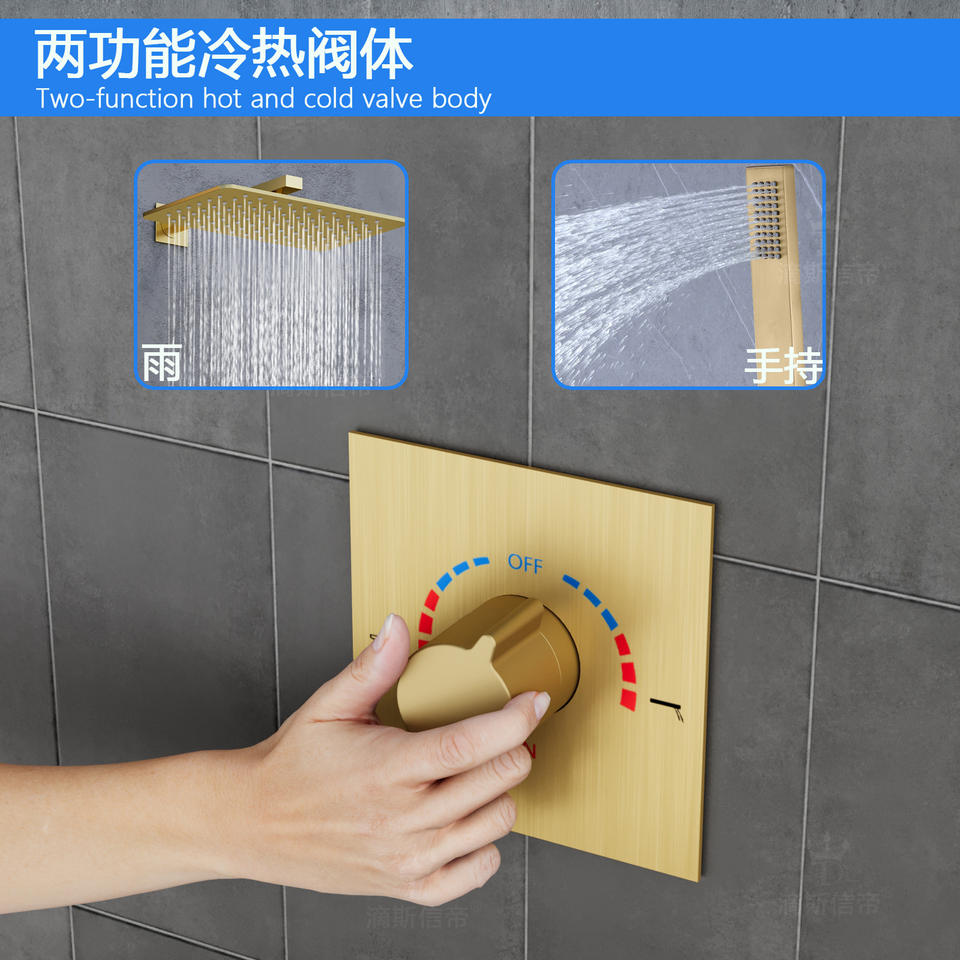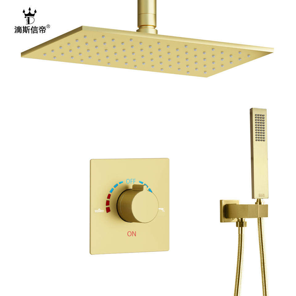 Ensemble de douche carré encastré mural en or brossé avec contrôle de la température, fonction massage, style minimaliste
