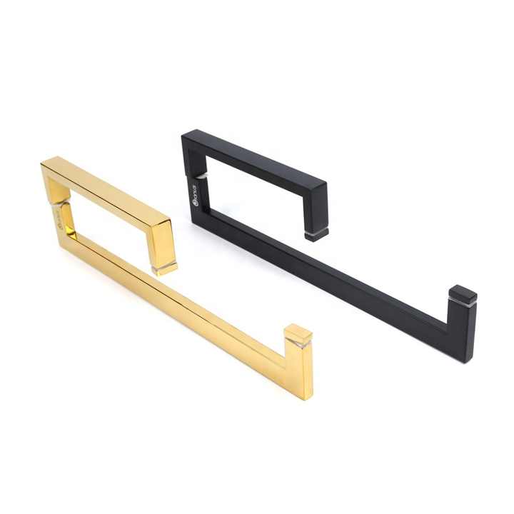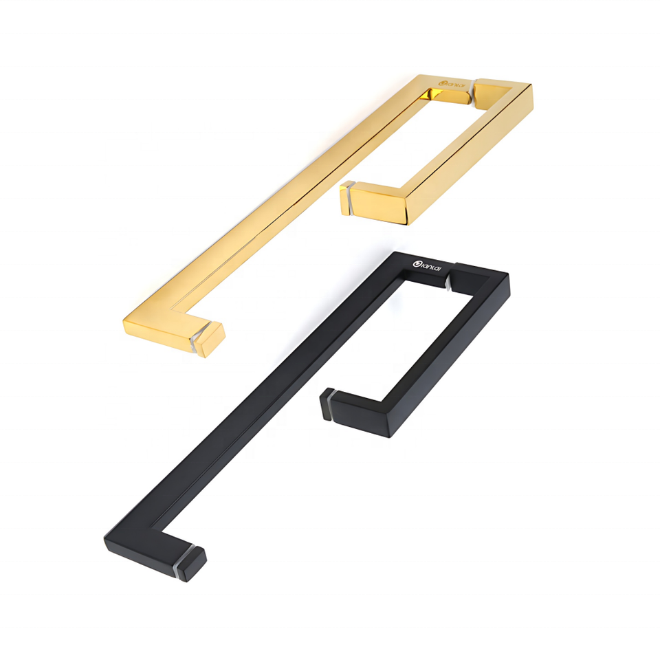 Quincaillerie de douche en verre trempé Poignée de porte carrée en forme de L