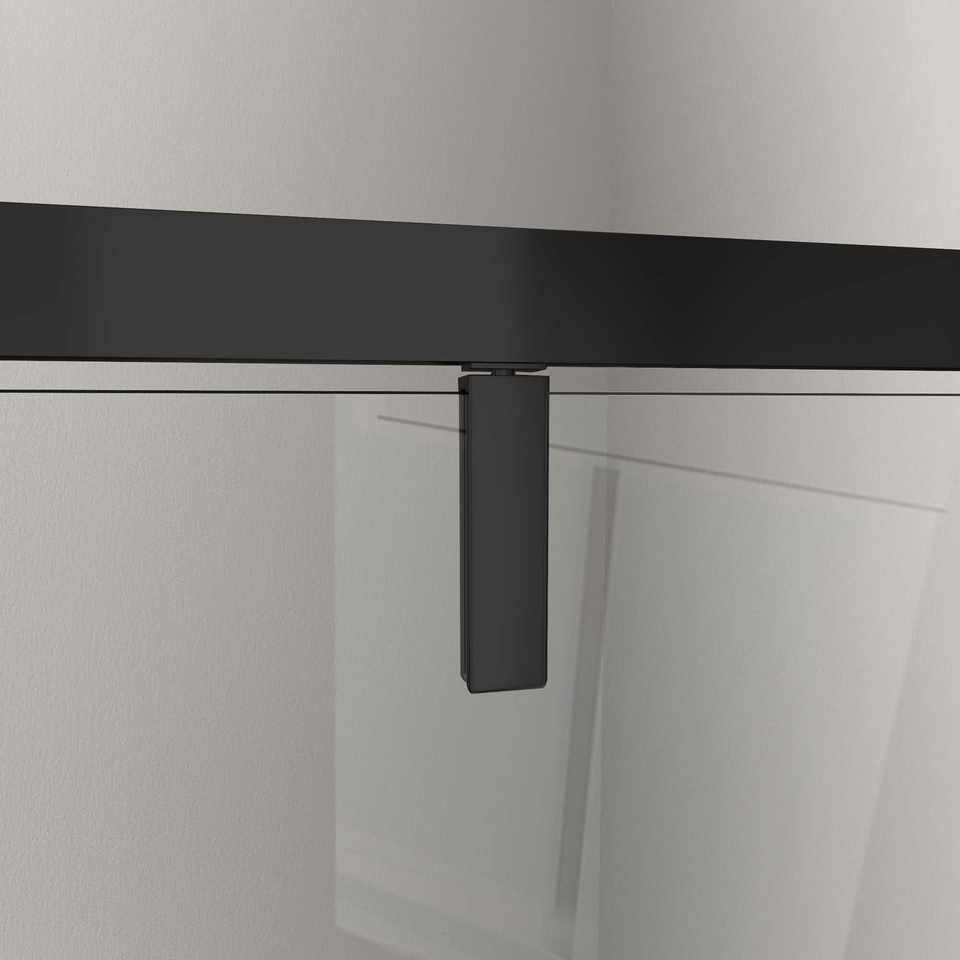Douche avec paroi latérale fixe et porte rotative avec broches asymétriques 8 MM noir mat 120 (118-120) FIXED x DOOR 70 (67-70)